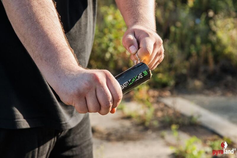 Dank seiner speziellen Auslösung (erfolgt durch einfaches Ziehen an einem Ring) lässt sich BATTLESMOKE 38 bequem und sicher überall da einsetzen, wo Feuerzeuge oder herkömmliche Anzündmittel versagen. Ob Regen oder Sturm, BATTLESMOKE zündet zuverlässig und setzt unmittelbar nach der Zündung über 1 Minute lang dichten, weißen Rauch frei. Dank seines Zündringes und seines Außendurchmessers von 38mm eignet sich BATTLESMOKE 38 nicht nur ausgezeichnet für Film- oder Fotoaufnahmen, sondern ist gleichermaßen prädestiniert für die szenische Nachstellung von militärischen Einsätzen oder Übungen.
